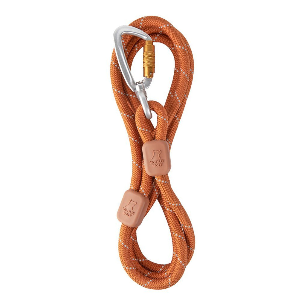 Det hele begyndte med et stykke pensioneret klatrereb. Tilbage i 2016 håndknyttede Maria den allerførste Woolly Wolf-line til Yoda med reb fra sit lokale klatrecenter. Det blev grundlaget for vores produkter. Vores Rope Leashes er udviklet ligesom professionelt klatreudstyr og har en kernmantle-kerne, der giver et "blidt opfang" ved pludselige ryk. Det var den perfekte kombination af design og genanvendte materialer, som satte standarden for alt, vi fremstiller i dag.